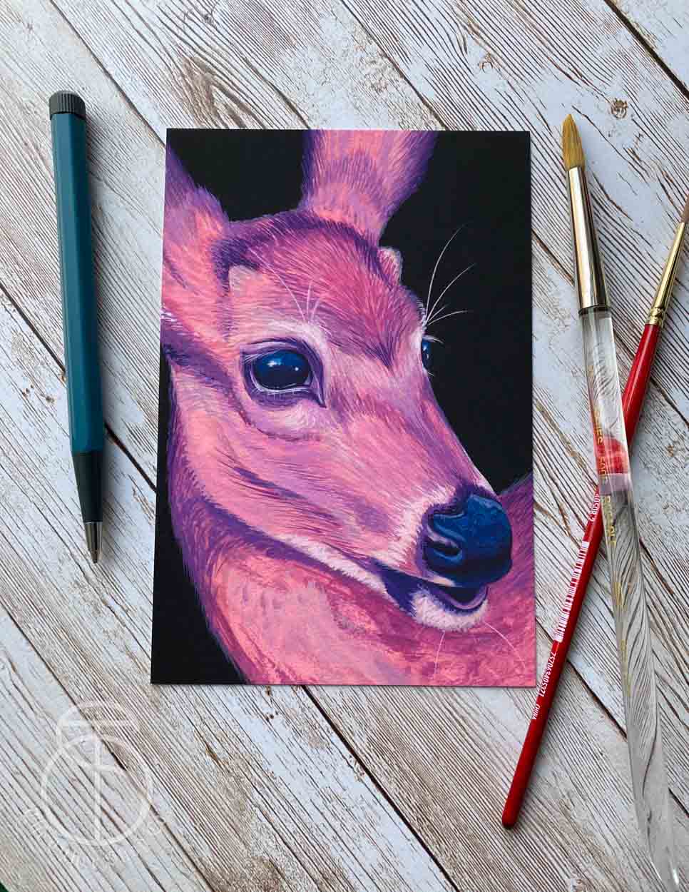 Add a splash of whimsy to your home with our Pink Deer Art Print. With its realistic yet playful depiction of a pink deer in portrait form, this print is sure to bring a smile to your face. Perfect for any art lover or animal enthusiast.